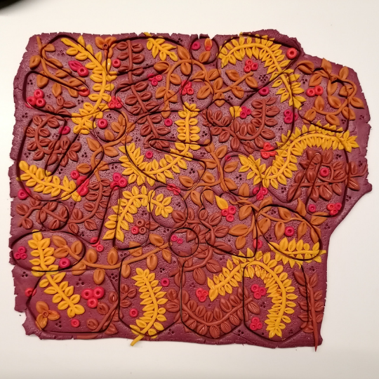 Een andere slab die ik maakte met de herfstkleuren is dit organisch terrazzomotief. Geen 5u werk maar toch uurtje of 2.