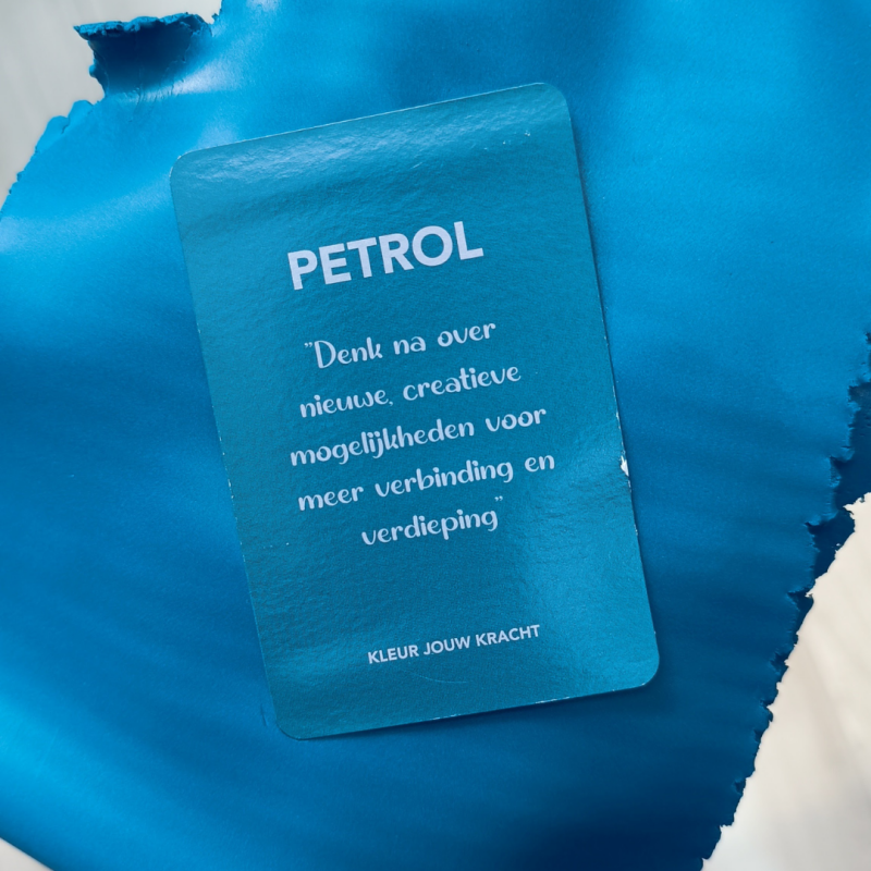 Petrol hoort tot de kleurfamilie turkoois. Deze staat voor innovatie & creativiteit, maar ook voor verbinding maken.