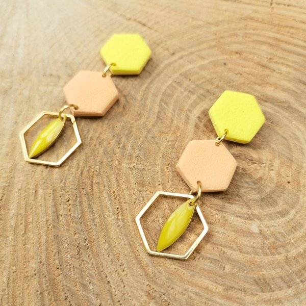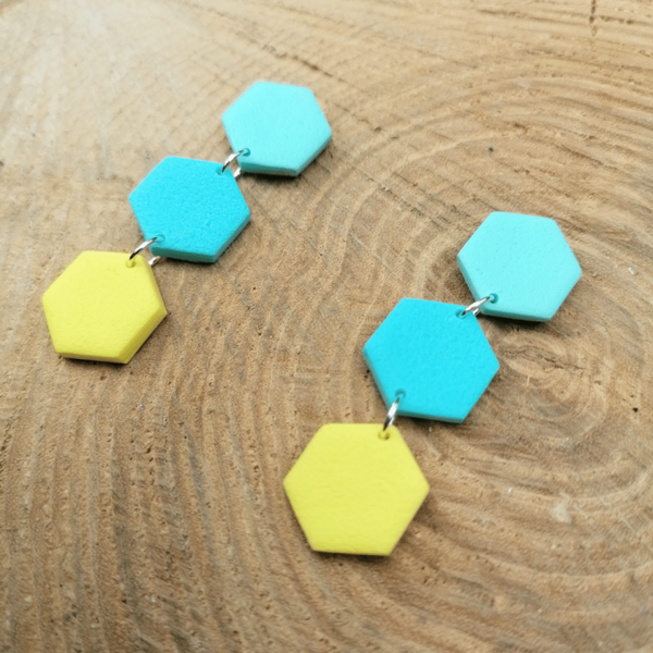 Deze oorbellen zijn mijn eigen ontwerp en handgemaakt in beperkte oplage. Polymeerklei oorbellen worden met de hand gemaakt en daardoor kan de structuur, kleur en patroon lichtjes variëren.