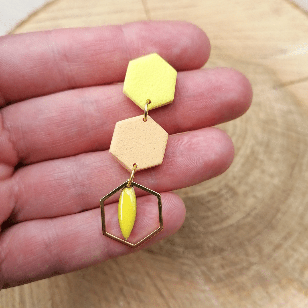 Deze oorbellen zijn mijn eigen ontwerp en handgemaakt in beperkte oplage. Polymeerklei oorbellen worden met de hand gemaakt en daardoor kan de structuur, kleur en patroon lichtjes variëren.