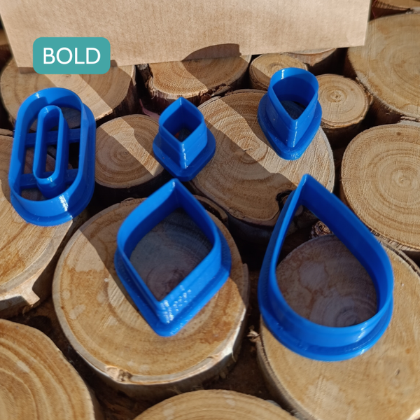 SET 2 BOLD: 5 iets grotere grotere uitsteekvormen voor grotere oorbellen (bevat o.a. mijn populaire vormen Droppe large en small om ook Droppe Duo te kunnen maken, Munk en Pollie)
