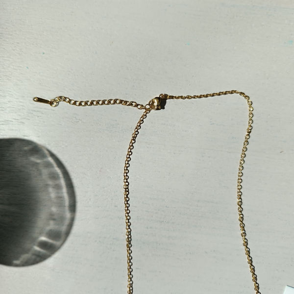 Hangertje met goudkleurige RVS ketting van 40cm + 5cm verlengstukje.