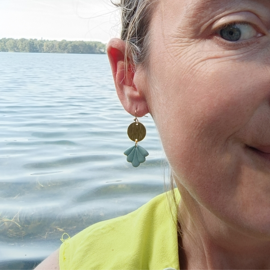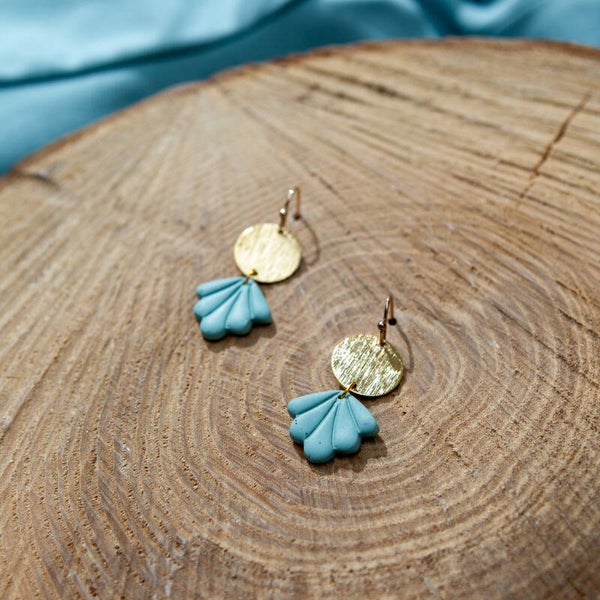 Schelpvormige korte bengelende oorbellen in polymeerklei.