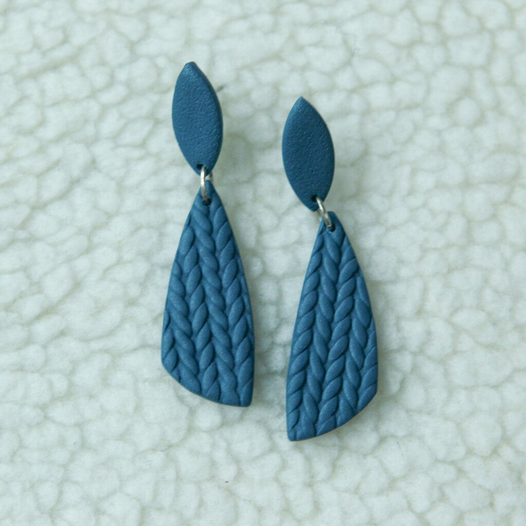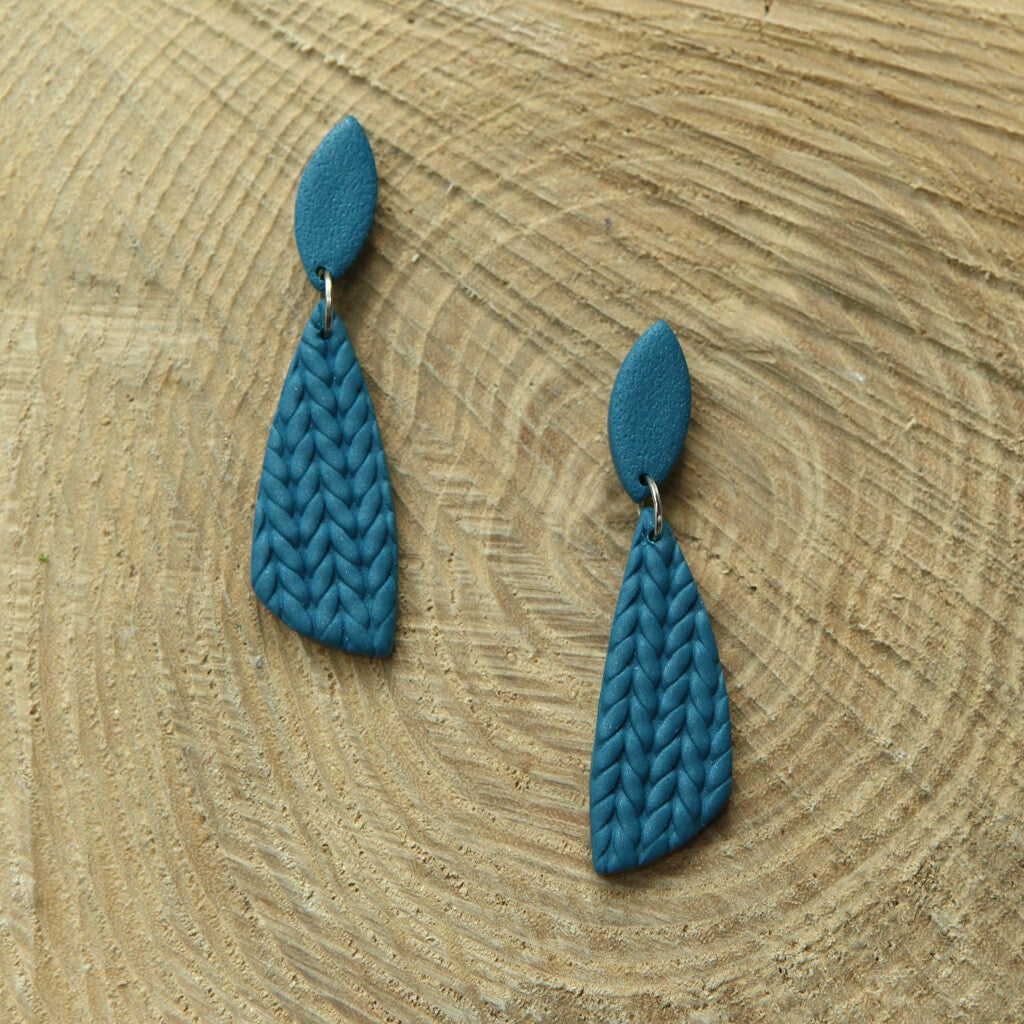 Elegante oorbellen die er uit zien als breiwerk met een klein stekertje