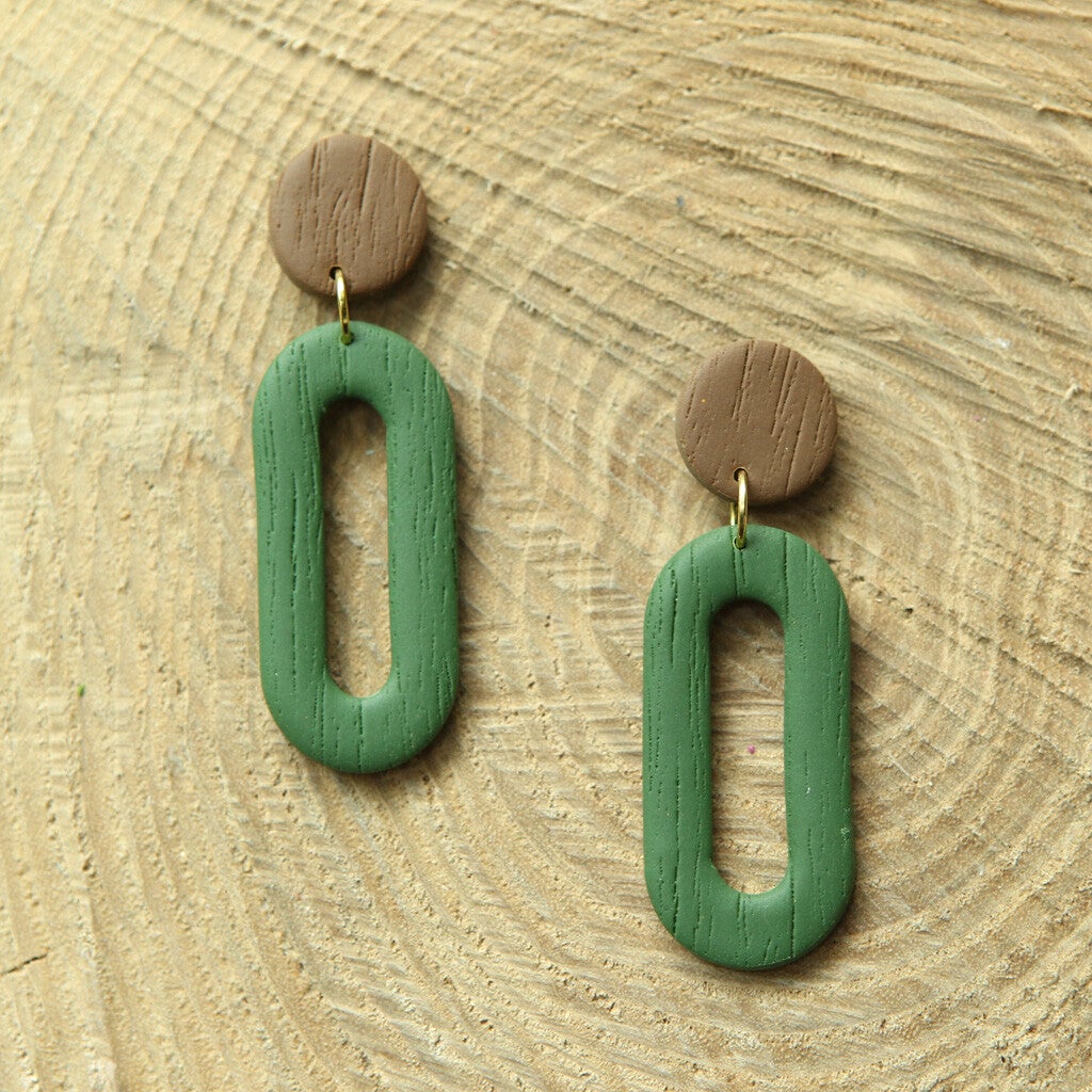 Langegerekte ovalen bengelende oorbellen in polymeerklei
