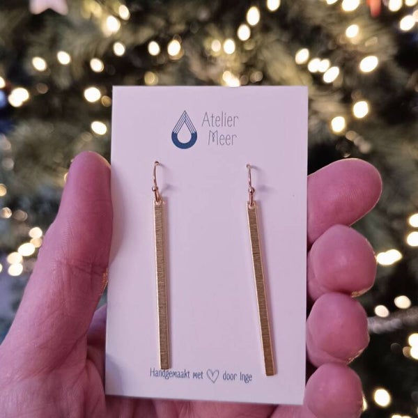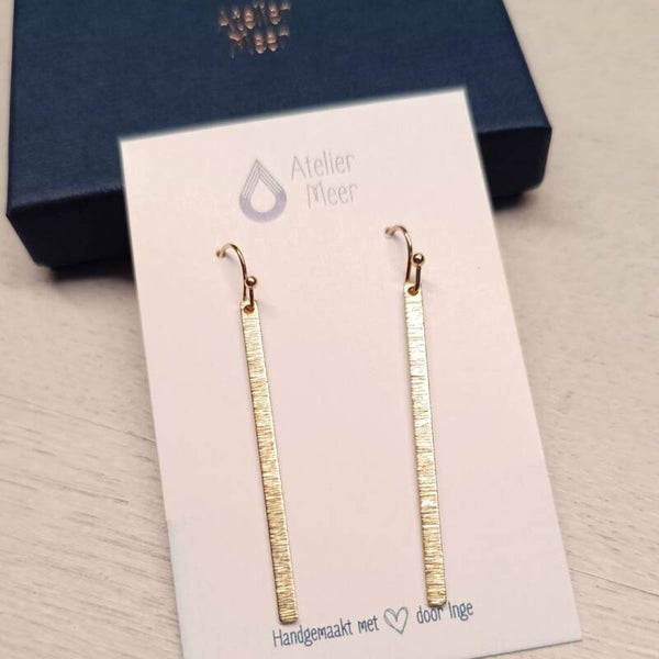 Lang smal staafje uit messing (goudkleurige legering van zink en koper) met fijne textuur