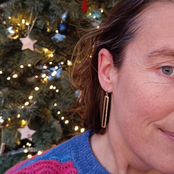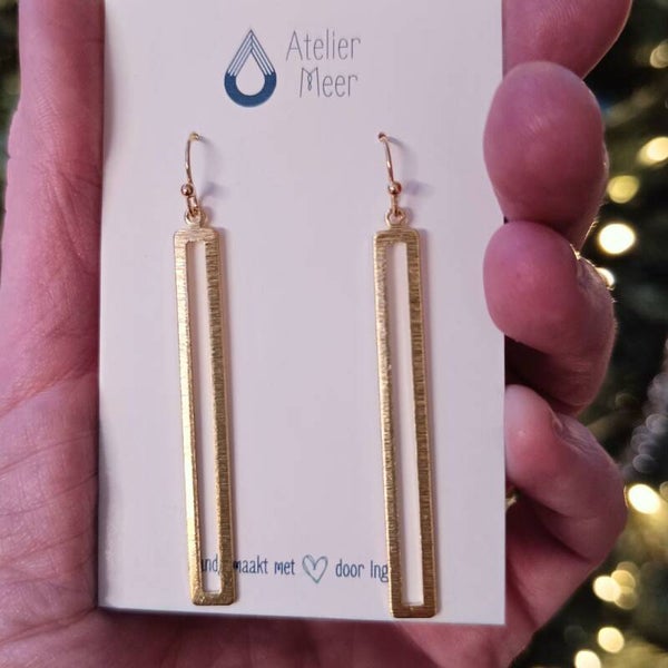 Lang dubbel staafje uit messing (goudkleurige legering van zink en koper) met fijne textuur
