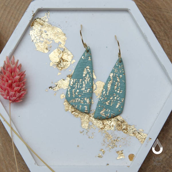 Elegante oorbellen in mintgroen (saliegroen) en gouden vlokjes met goudkleurig haakje