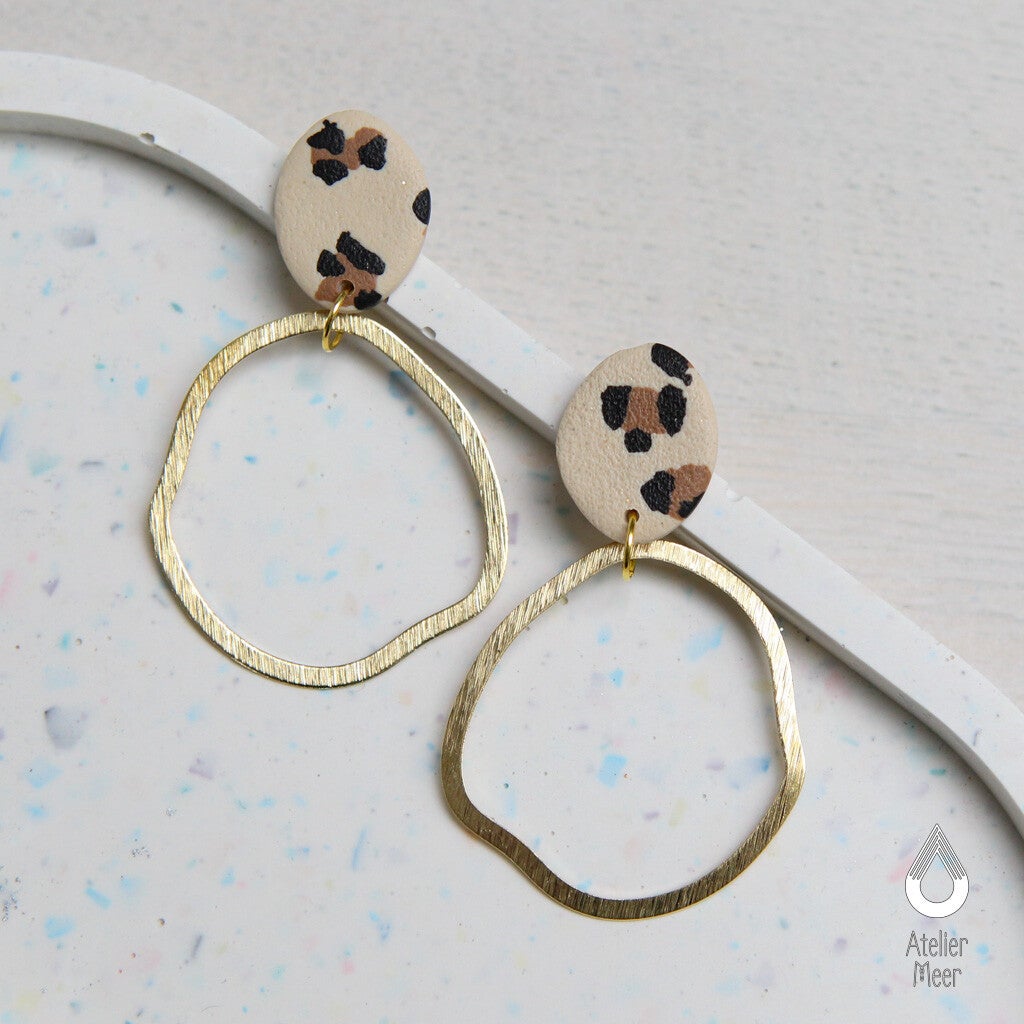 Ovalen oorstekers uit polymeerklei met messing organische cirkels