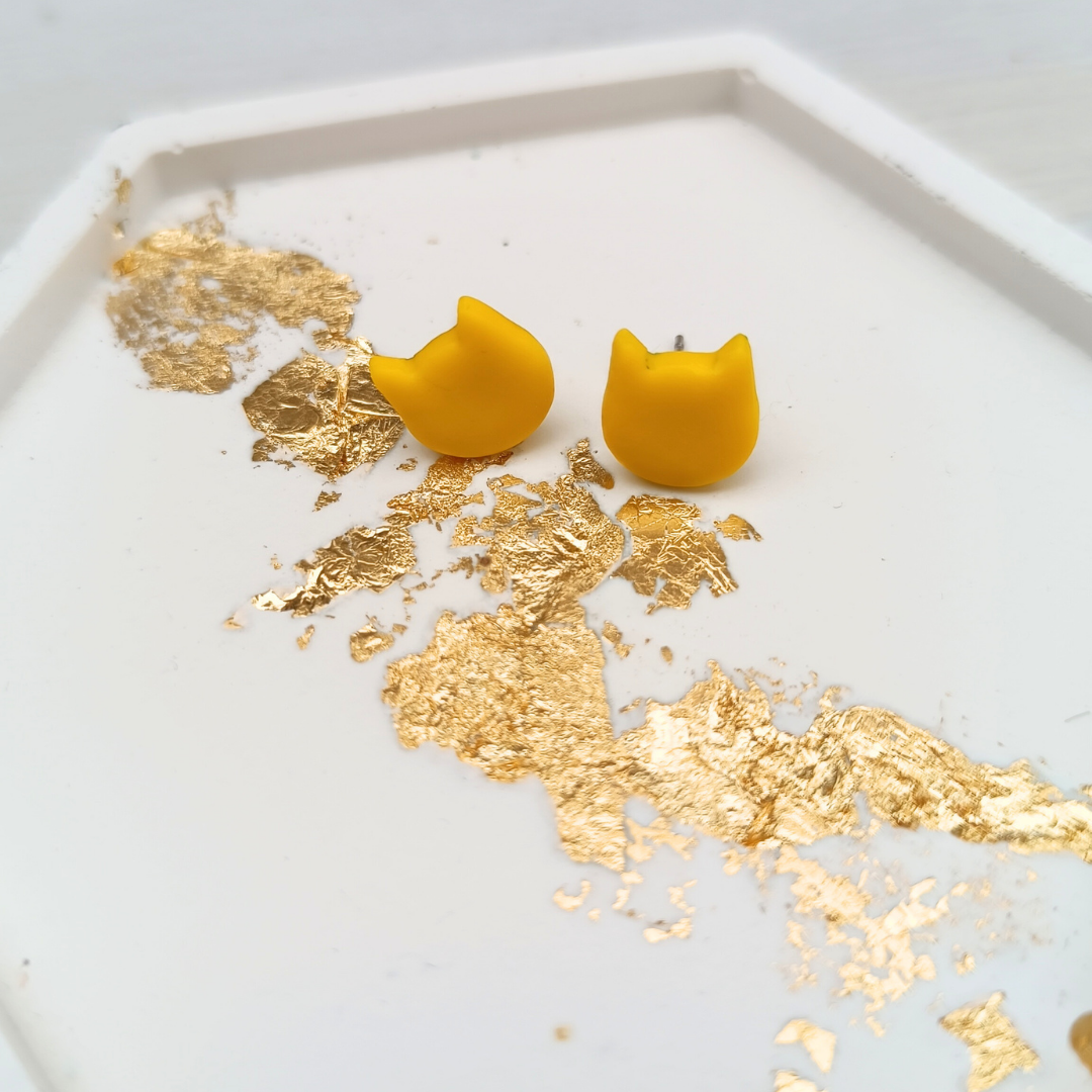 Miauw poes oorstekers ook voor kids | gele kat studs