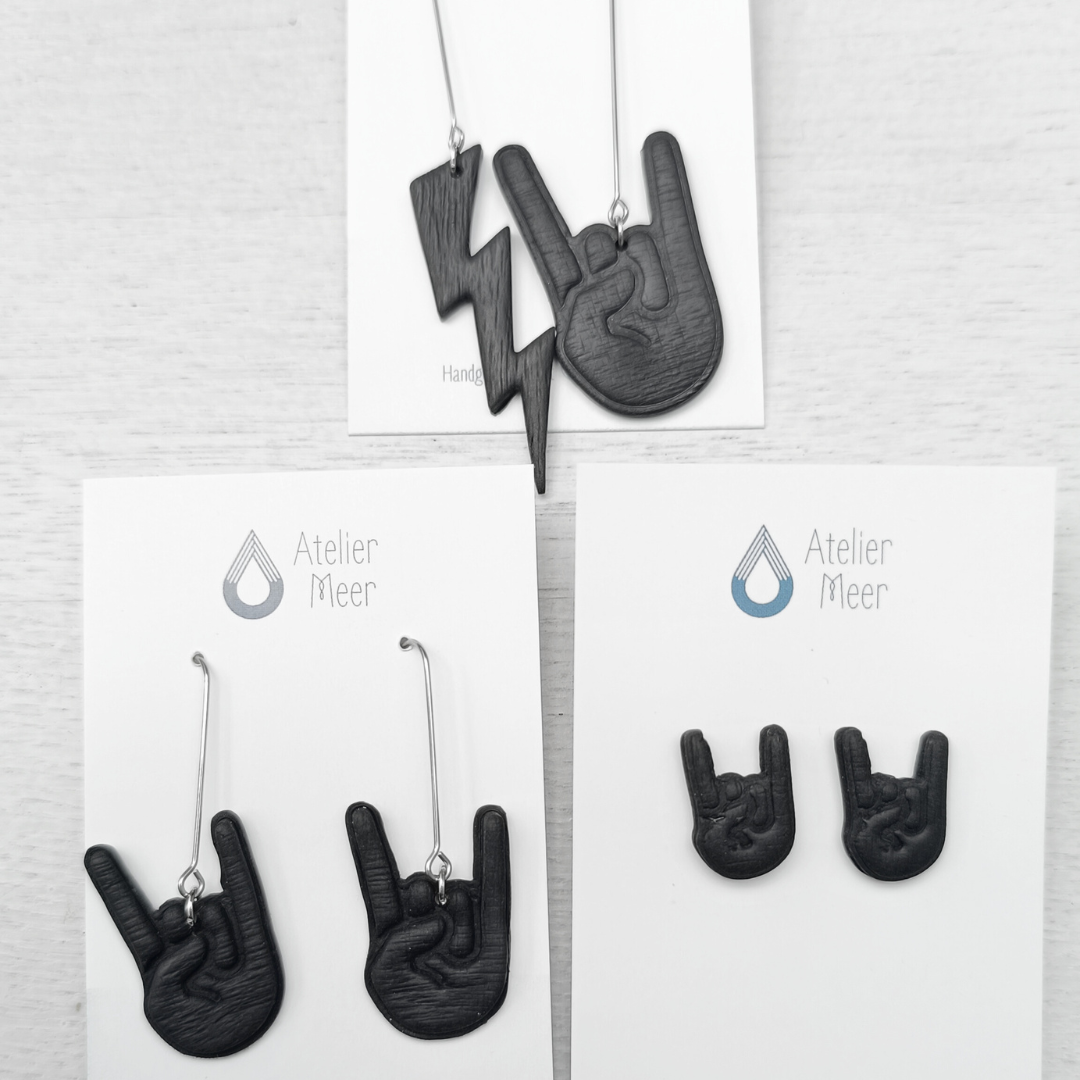 Zwarte Graspop oorbellen | metal rock hand (medium)