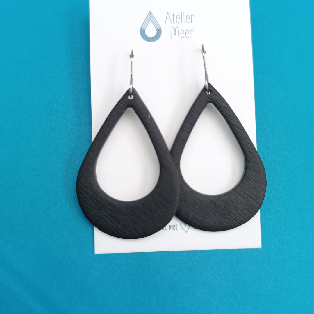 Droppe XL oorbellen ~ druppelvormige zwarte statement oorbellen