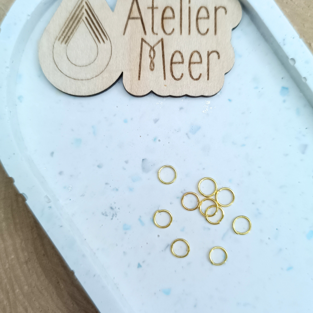 Goudkleurige gesloten jumpring (split ring) om onderdelen van o.a. oorbellen en andere sieraden aan elkaar te bevestigen.