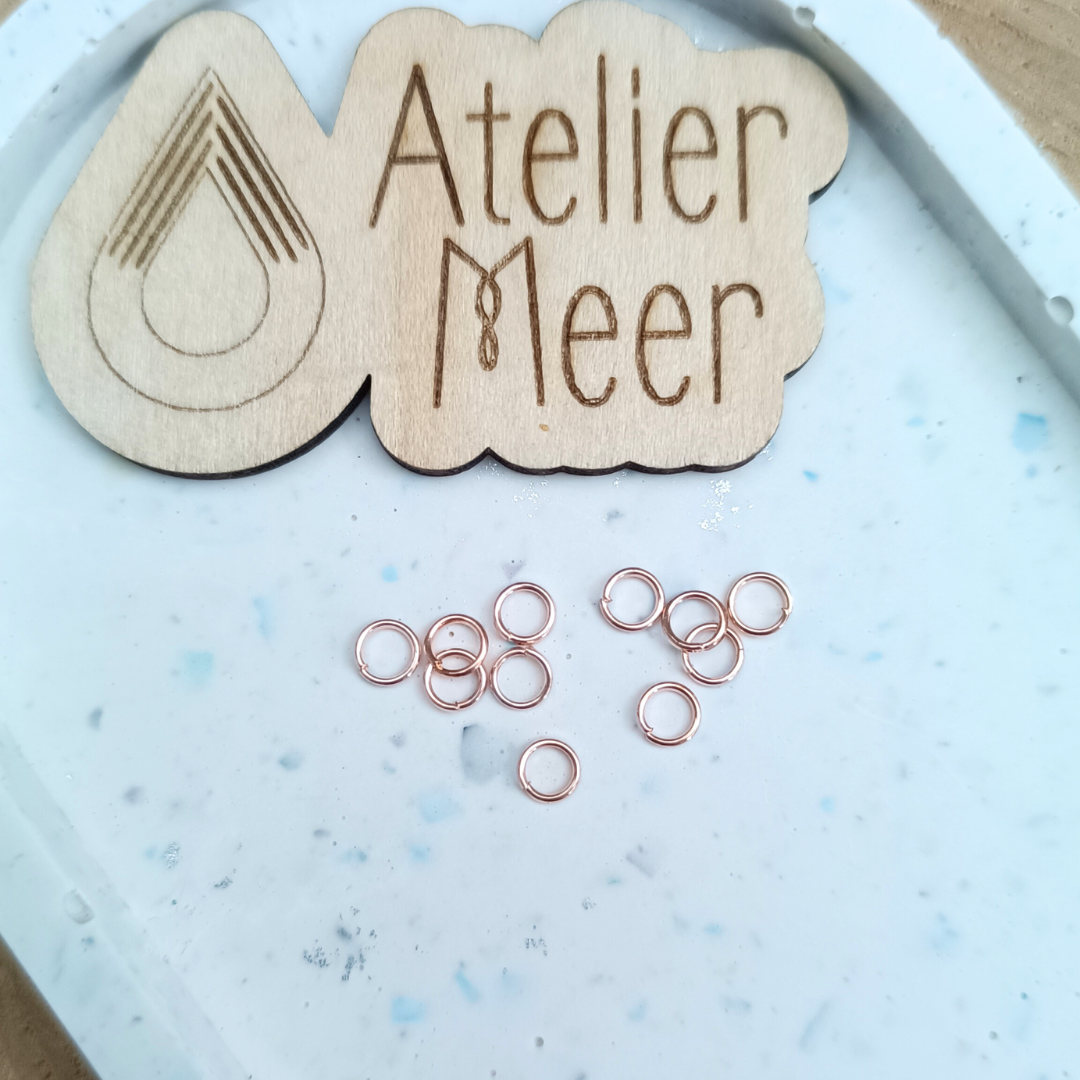 Rose goudkleurige gesloten jumpring (split ring) om onderdelen van o.a. oorbellen en andere sieraden aan elkaar te bevestigen.