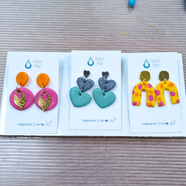 Ik leer je alles over de gebruikte materialen, de werkwijze, geef je tips & tricks terwijl jij 3 paar oorbellen maakt.