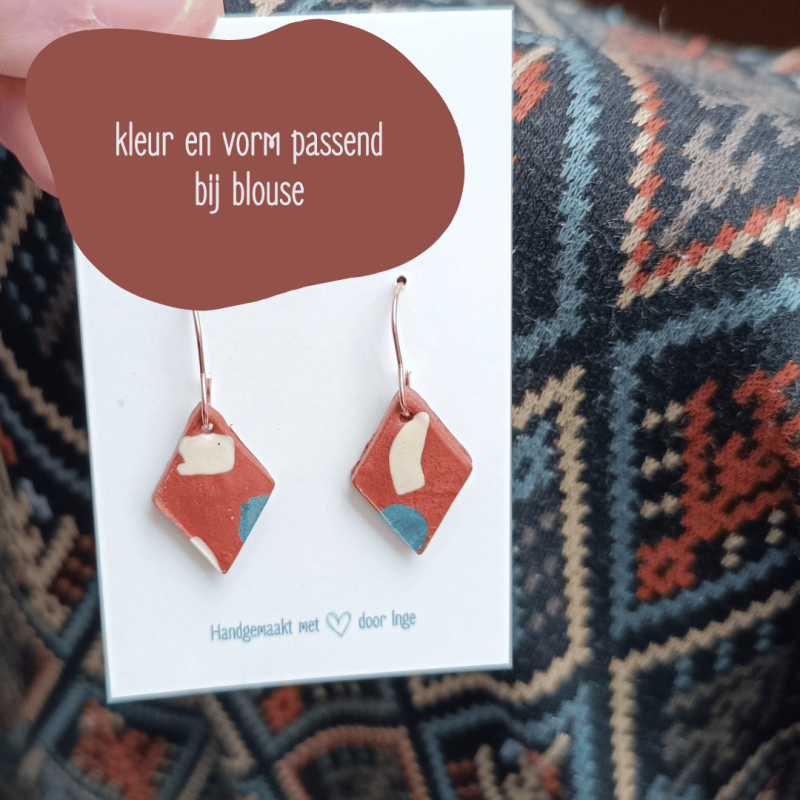 Terwijl de oorbellen in de oven zitten kunnen we gezellig babbelen met een drankje erbij, of je kan de creaties van mijzelf en van andere creatieve ondernemers ontdekken vooraan in de winkel.
