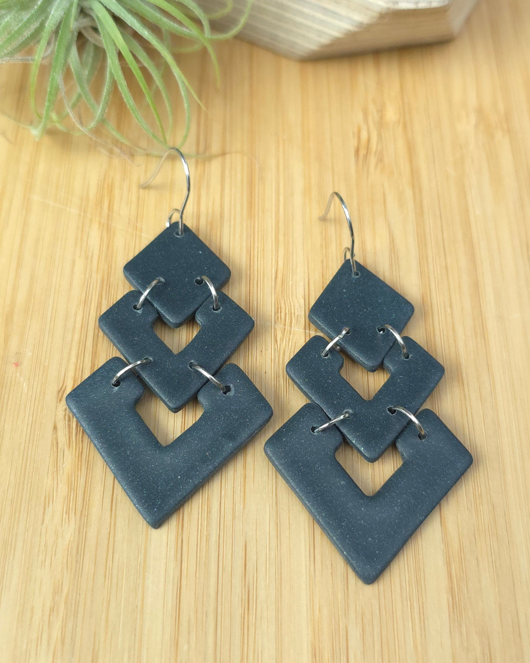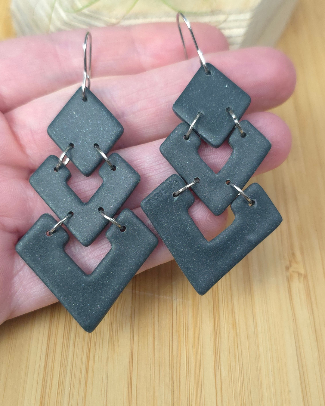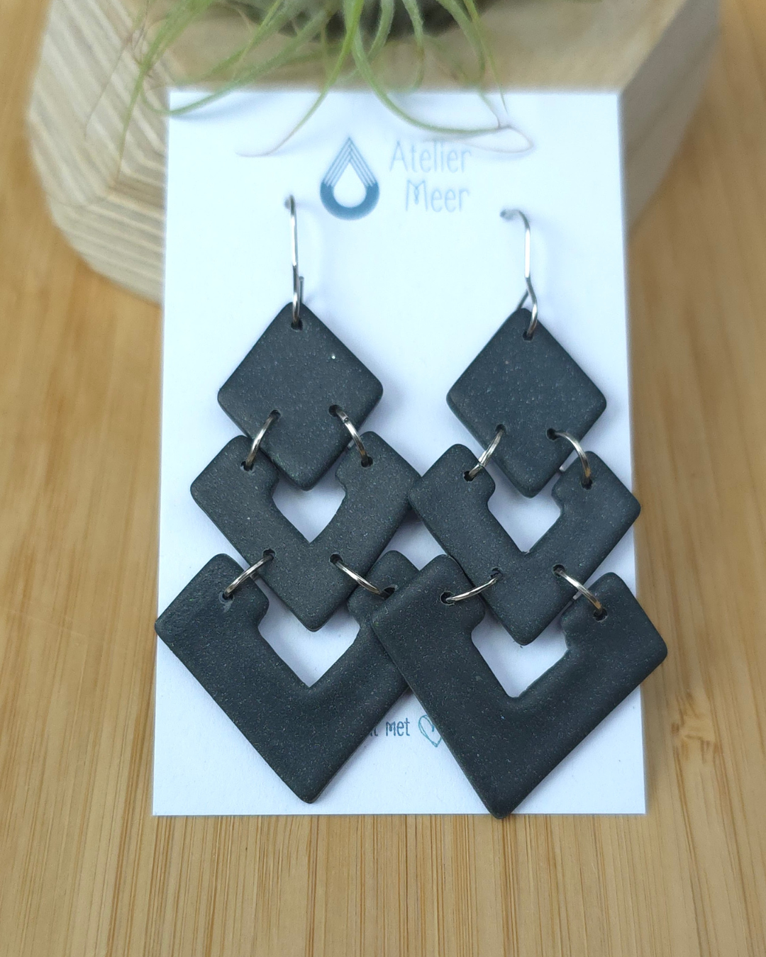 Torget Triple antraciet ~ lichtgewicht statement oorbellen