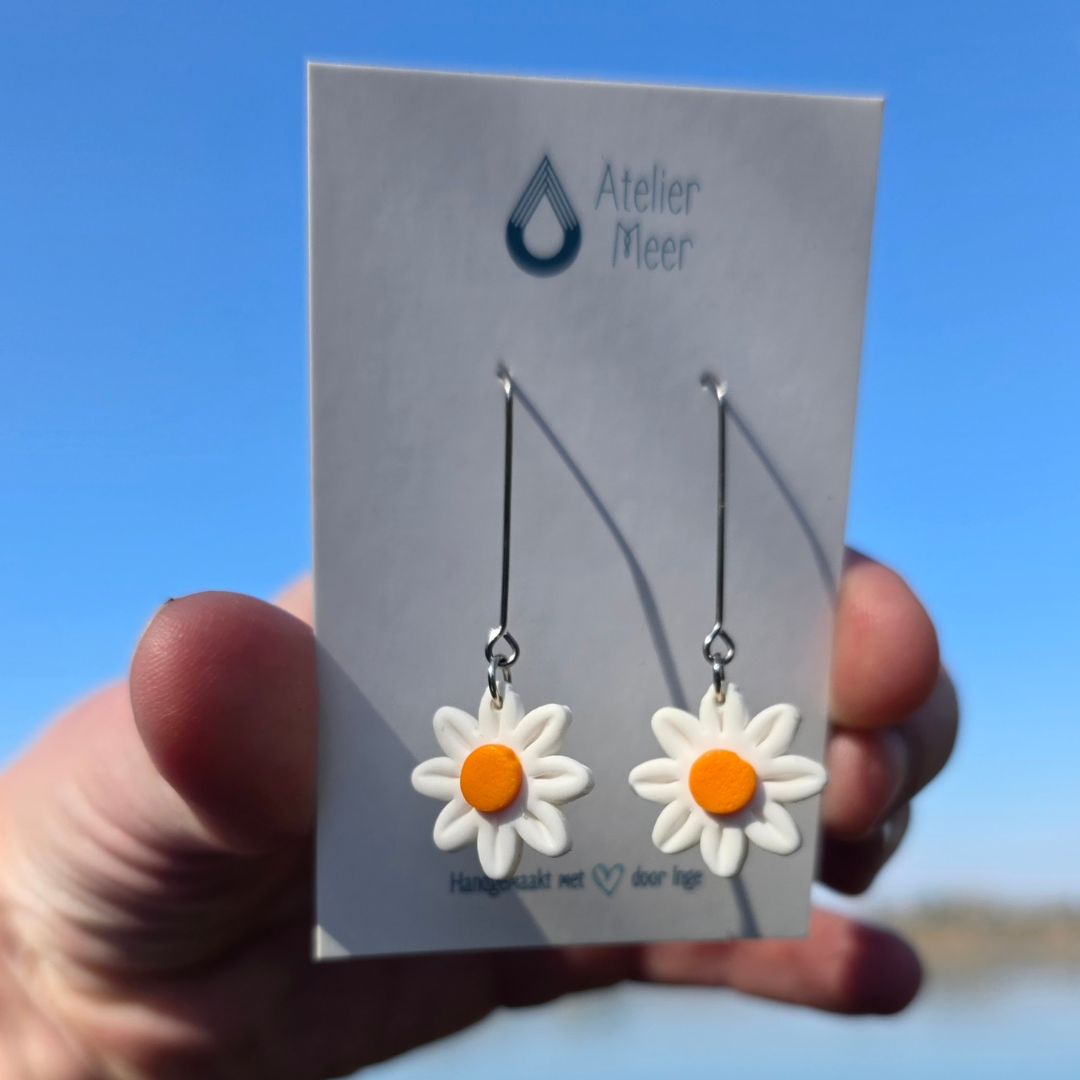 Daisy oorhangers ~ madeliefjes als klei oorbellen