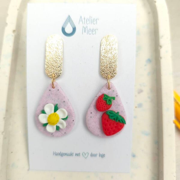 Op bestelling ook 2 dezelfde oorbellen mogelijk (ipv 1x aardbei en 1x aardbeibloem). Stuur hiervoor een mailtje of whatsapp