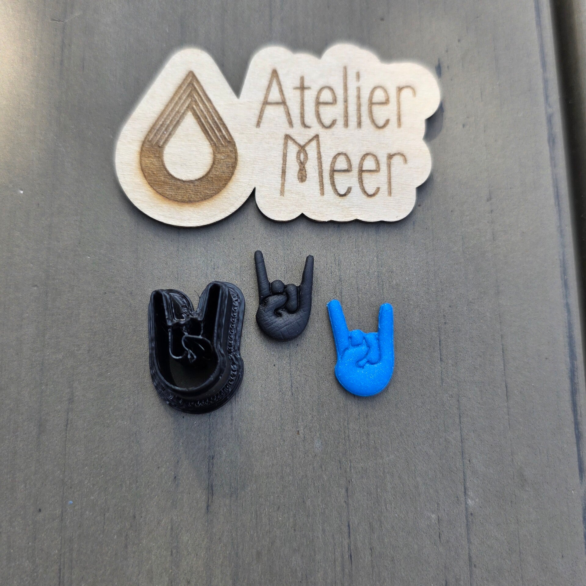 Rockhand of metal horns, hét symbool voor metal dat je voortdurend op Graspop Metal Meeting ziet. Dus het perfect symbool om oorbellen mee te maken, of sleutelhangers of hanger voor ketting, of ring, of wat je maar kan verzinnen
