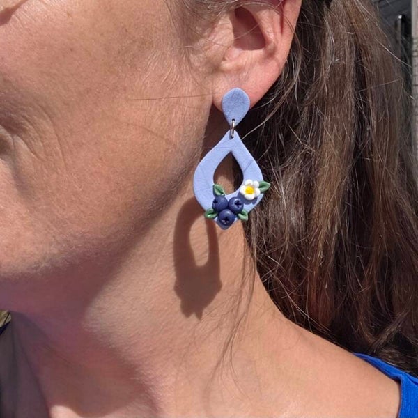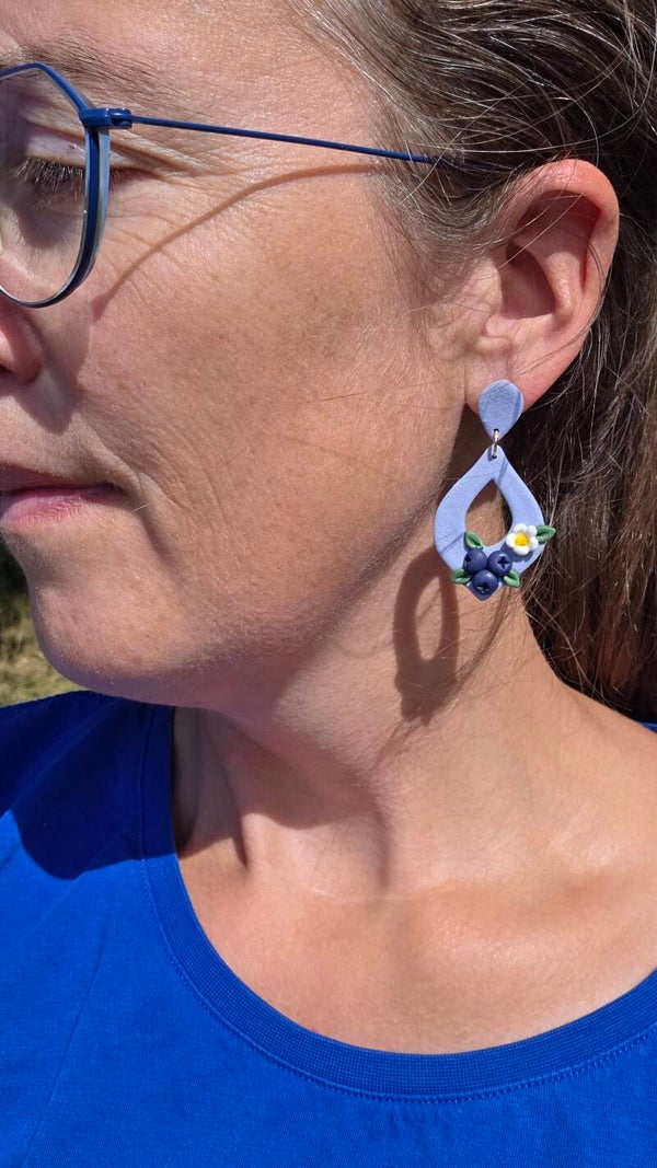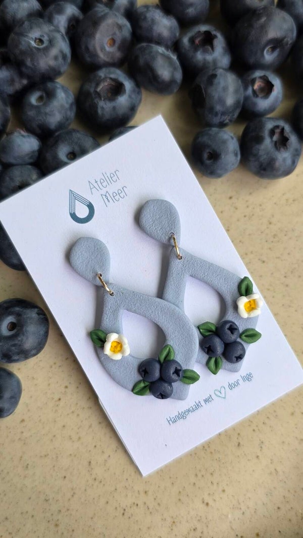 Blauwe bes oorbellen Smyl ~ botanische collectie