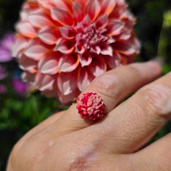 Ring Dahlia pompon mini ~ verstelbare ring uit stainless steel met klei