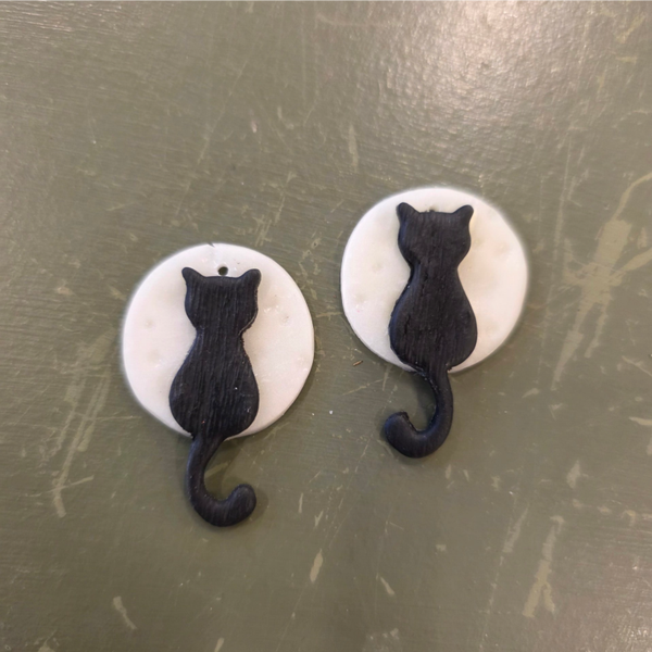 Zwarte kat met volle maan als handgemaakte lichtgewicht oorbellen