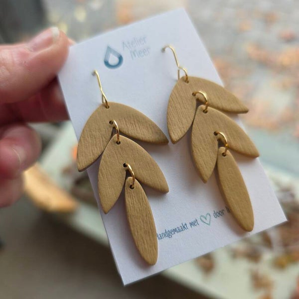 Meerdelige blaadjes oorbellen in koffie met melk kleur ofwel zandkleur