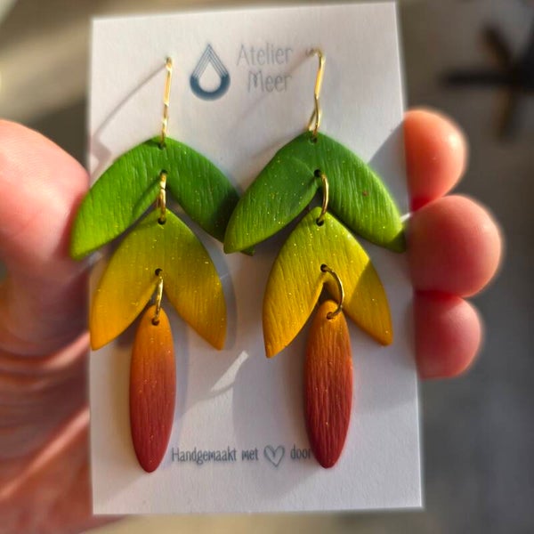 Meerdelige blaadjes oorbellen in kleurverloop met de kleuren van de bladeren in de herfst