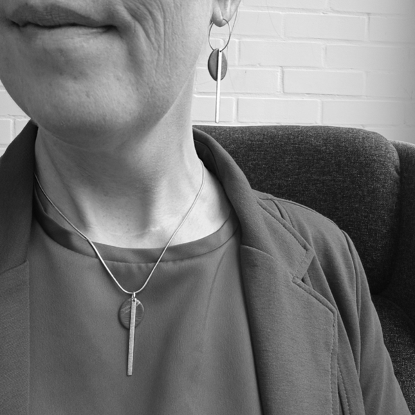 Organisch rond of ovalen stukje klei met smal staafje in geborsteld messing