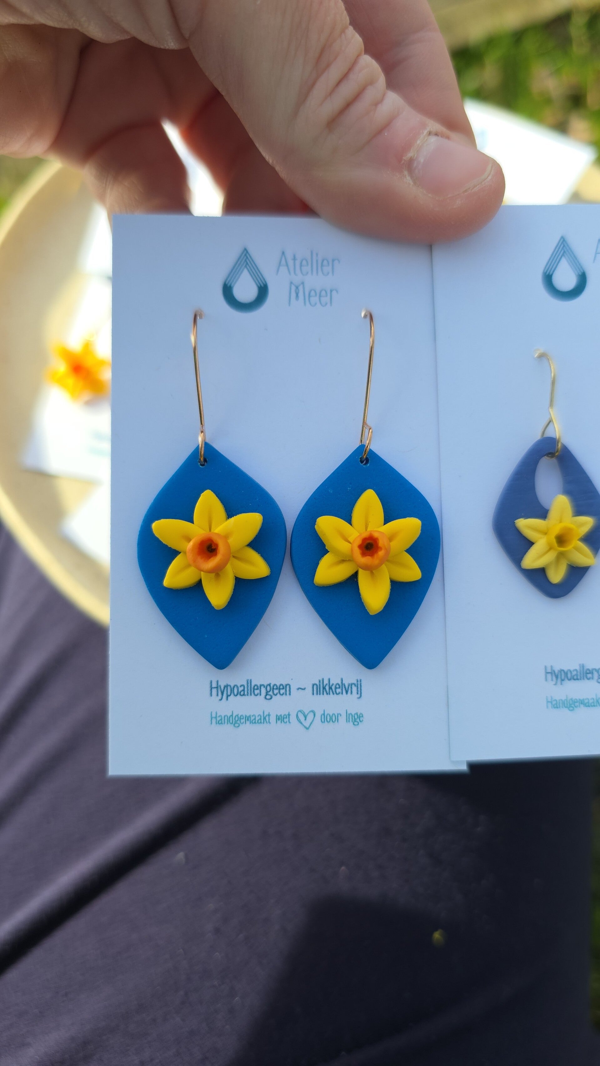 Smyl narcis oorhangers ~ felgeel en blauw
