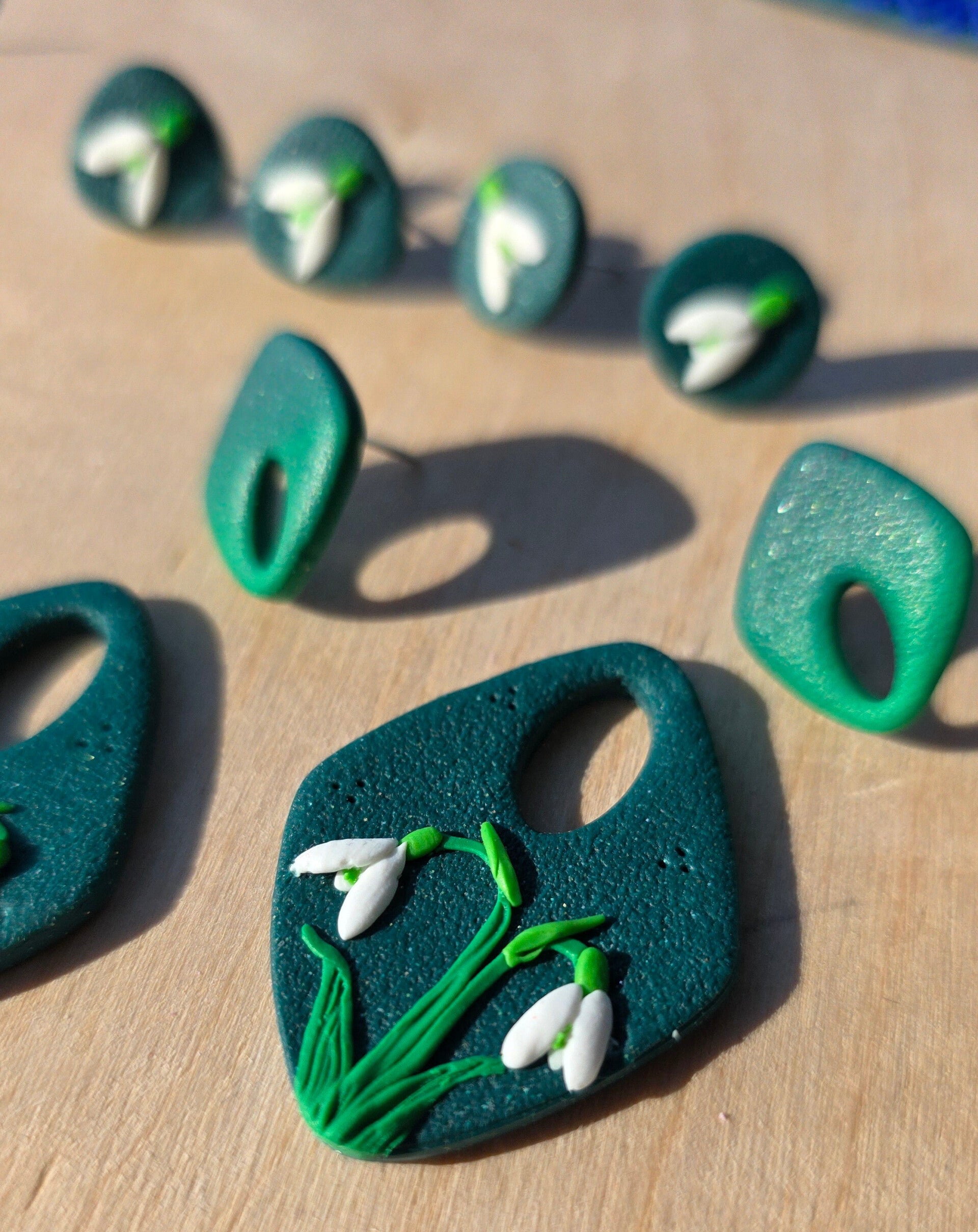 Draag de delicate schoonheid van sneeuwklokjes met je mee. Deze handgemaakte oorbellen zijn gemaakt uit polymeerklei en brengen de elegante vormen van bloeiende sneeuwklokjes tot leven.