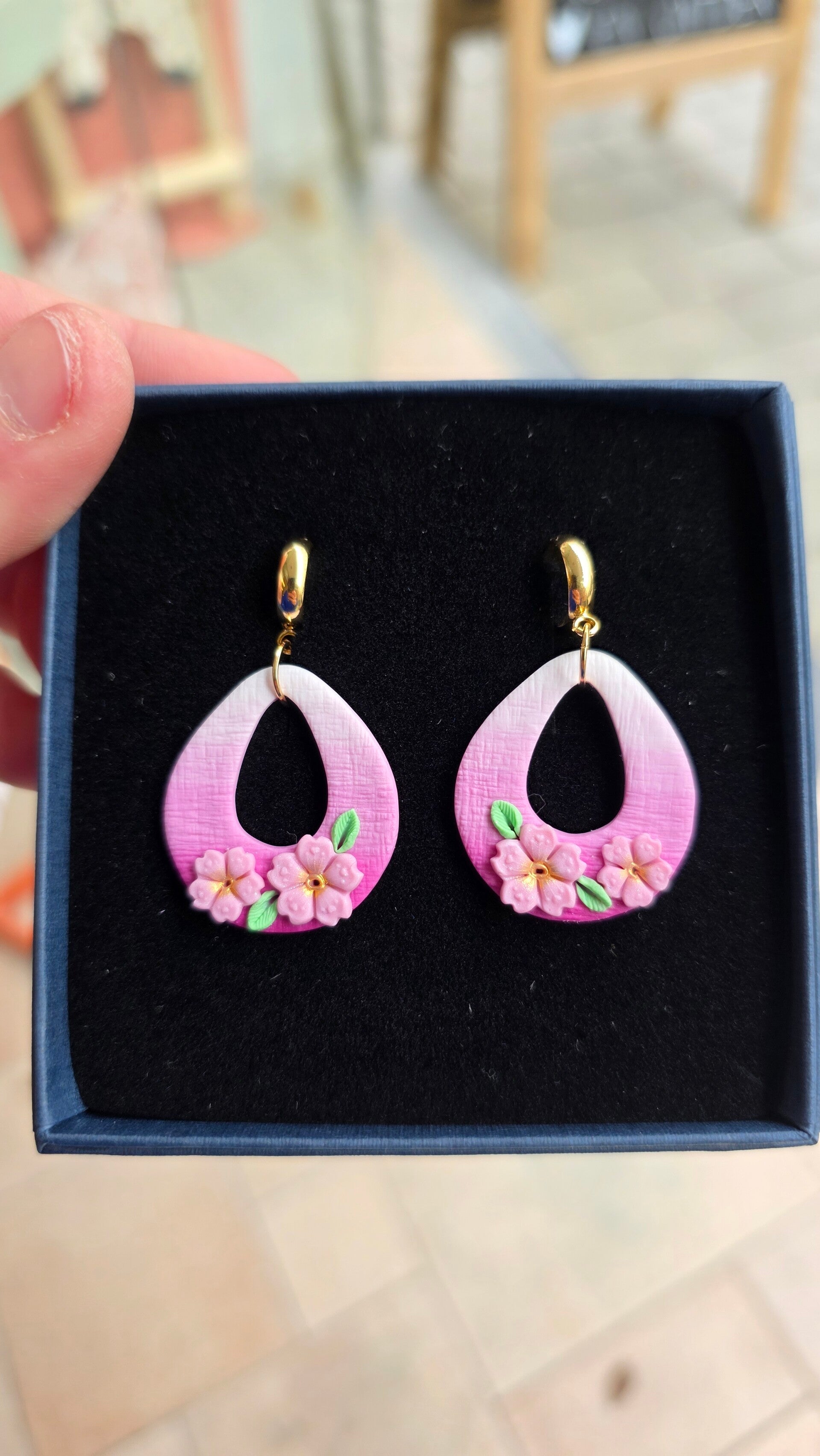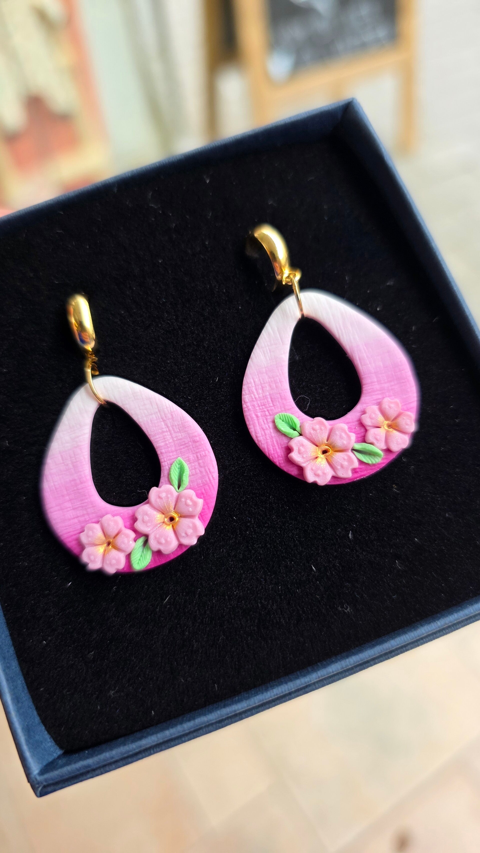 Sakura oorbellen ~ lichtroze kersenbloesems