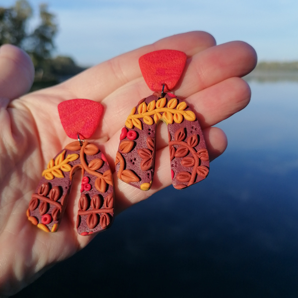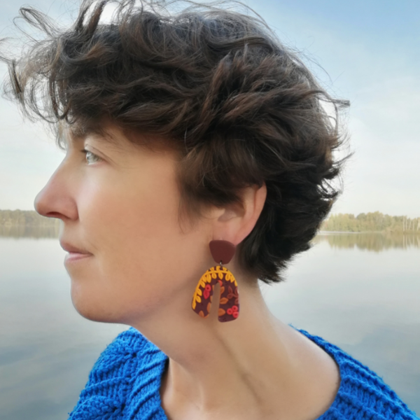 Alle oorbellen zijn mijn eigen ontwerp. Polymeerklei oorbellen worden met de hand gemaakt in beperkte oplage en daardoor kan de structuur, kleur en patroon lichtjes variëren.